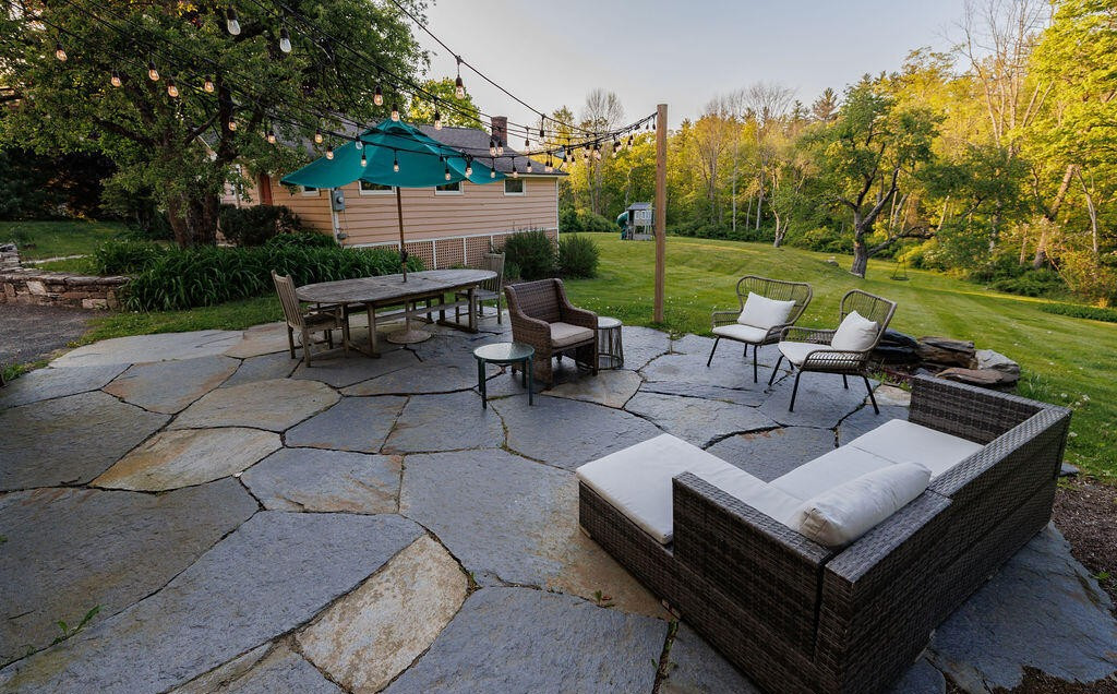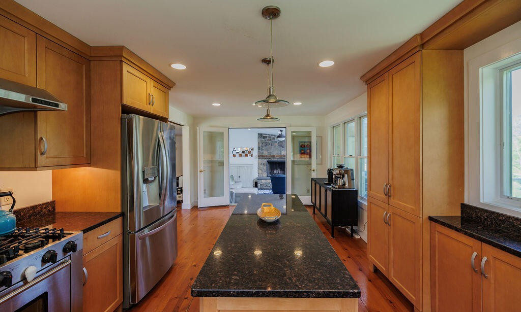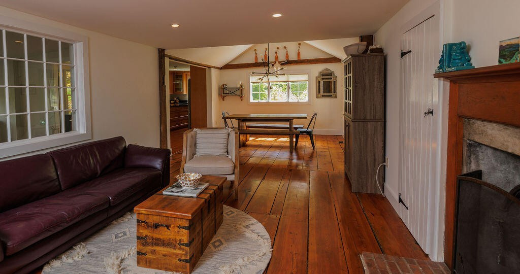 An 18th-century Colonial with a guest cottage set on over three acres is minutes to downtown Great Barrington. It has three bedrooms and three bathrooms in 2,940 square feet. The kitchen overlooks a large den that walks out to a deck. An expansive primary suite addtion was built in 2006. The two-bedroom guest house has great rental history. Listed at $1,499,000 by Berkshire Property Agents.