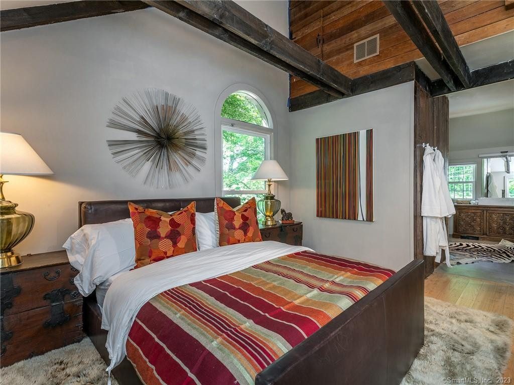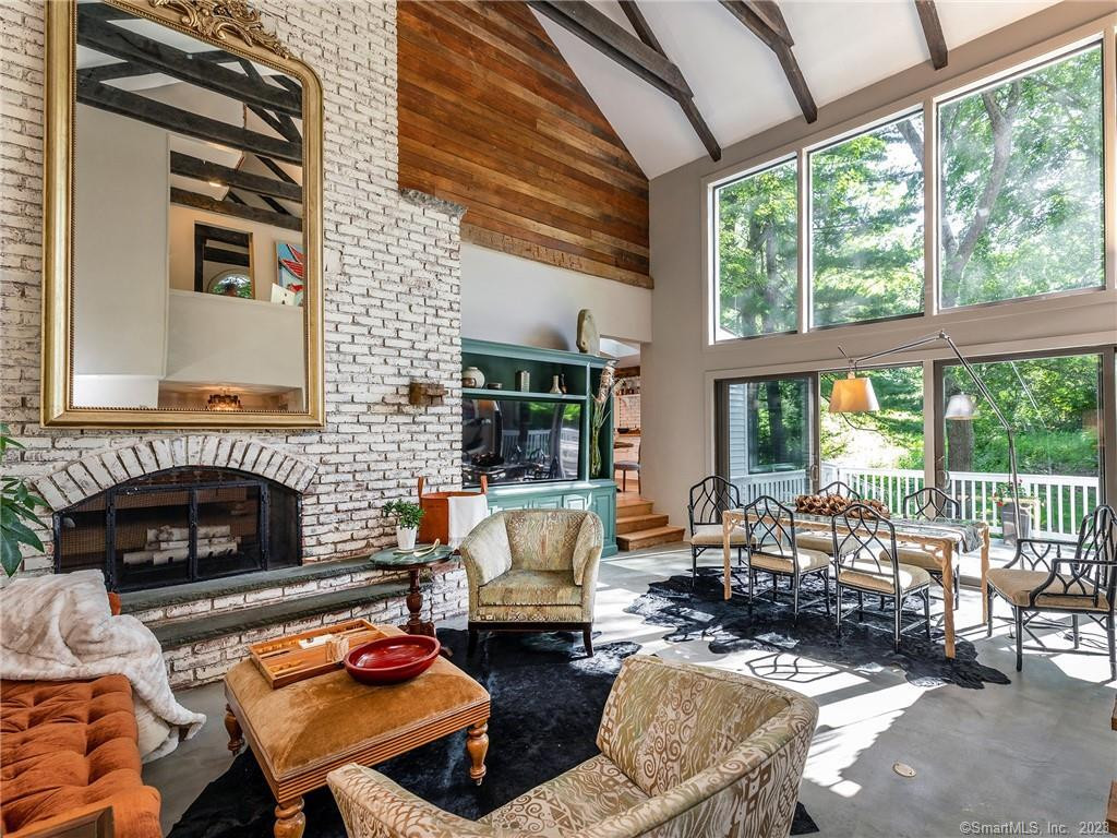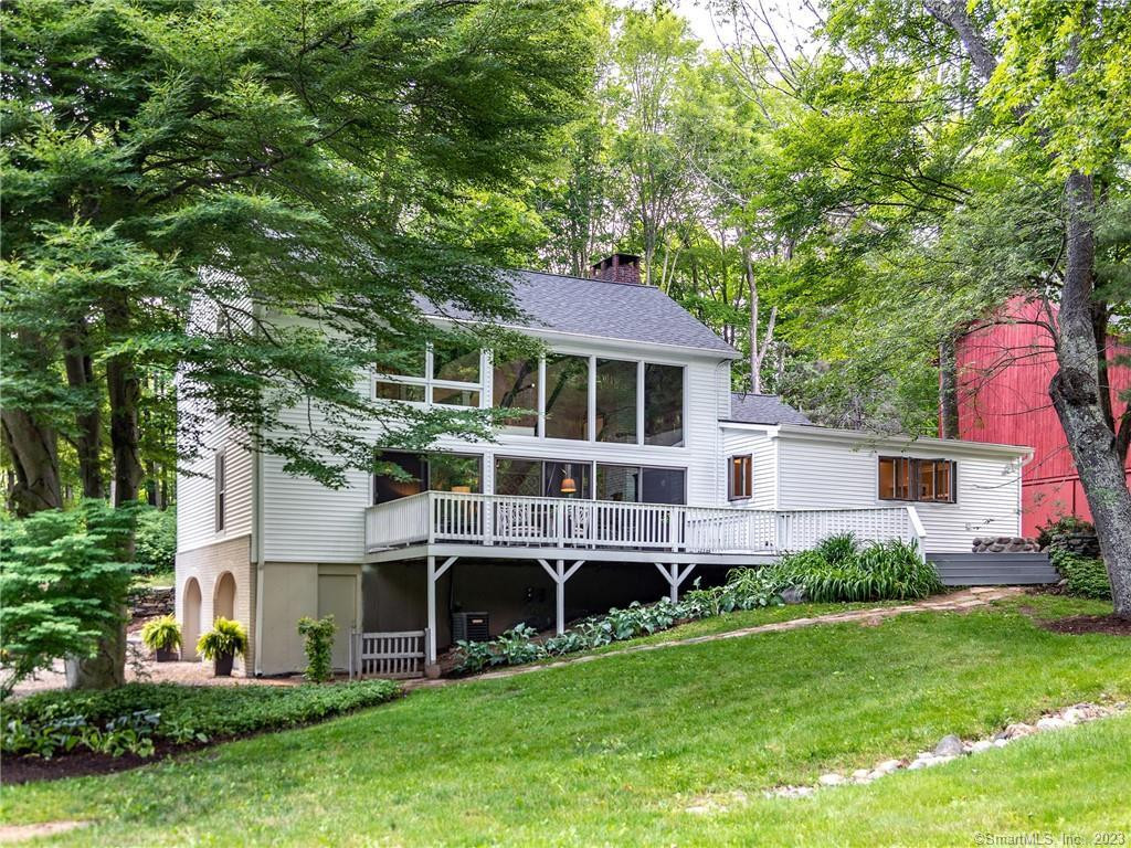 Realtor calls this a "storybook cottage" in Bethlehem. It was expanded in the 1970s and fully renovated with a chef's skylit kitchen and vaulted beamed ceilings. It offers two bedrooms and three bathrooms in 2,080 square feet, a two-story fireplace, deck and stone terrace, and new fire pit. Landscaping is complemented by new stone elements. Listed at $949,000 by William Raveis Lifestyles Realty.