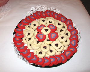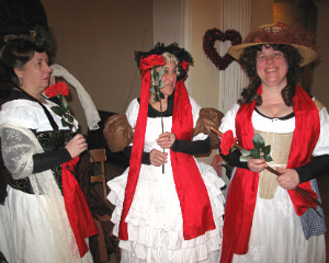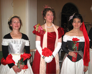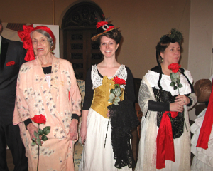Heart-shaped cookies for the crowd; Dyann Arduini, escorted by J. Peter Bergman, models circa 1810 undergarments including pantalets, petticoat and corset.