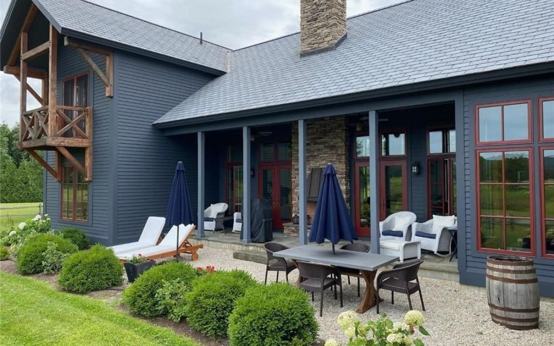 Built in 2007, this modern farm house has views of surrounding farms and fields. There are five bedrooms and six bathrooms, a chef's kitchen, work-from-home spaces, and private guest or family bedroom suites. The house has four private porches as well as a whole-house generator. Listed at $1,695,000 by Houlihan Lawrence.