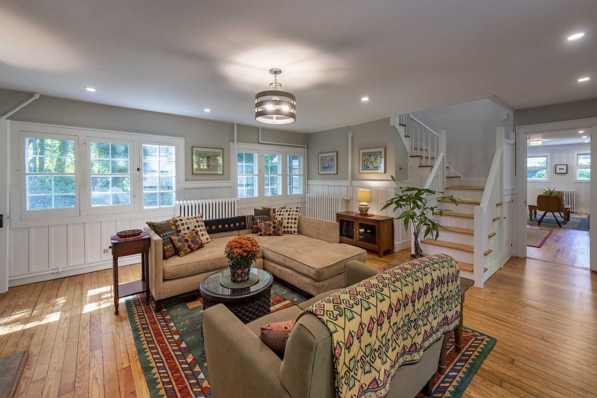 A farmhouse built in 1900 in the village of Rhinebeck offers five bedrooms, four bathrooms, and two barns, plus open and landscaped grounds. It was expanded in 1950s and has now been completely renovated. The barn could be used as a studio, pool house or an accessory building. It's just a short walk to the village shops and restaurants. Listed at $1,499,000 by Century 21 Alliance Realty Group.