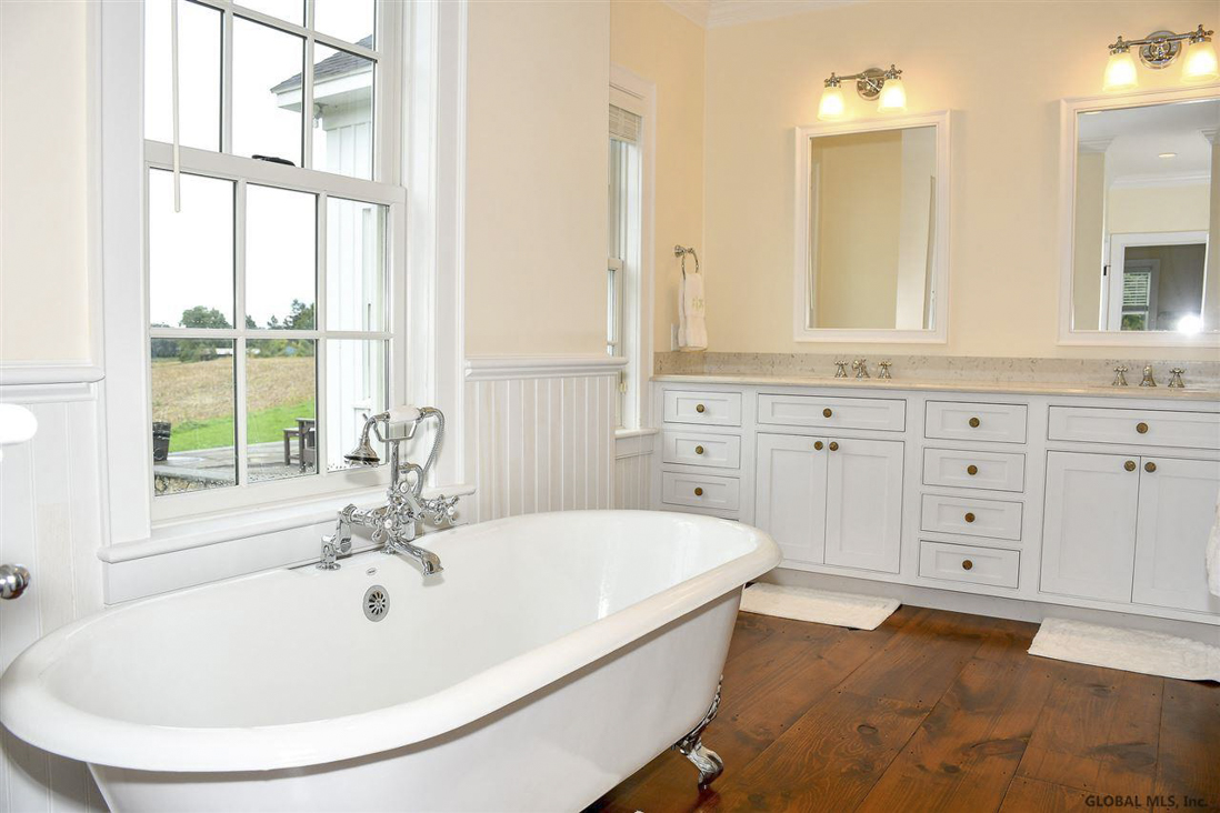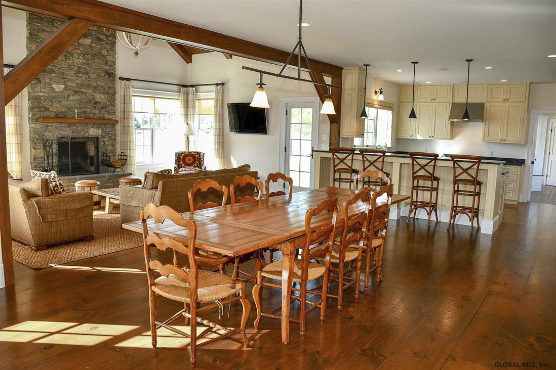 This five-bedroom, five-bathroom farmhouse sits on 84 acres in Stuyvesant. Inside there is a large kitchen, a great room with a wood-burning fireplace, and a first-floor master suite. There is also a separate apartment over the garage, a finished basement, and a bluestone patio. With a conservation easement in place, there are 30 tillable acres plus 45 acres of hardwood forests with trails for hiking, ATVs and snowmobiles.This property is in the center of the Hudson Valley and is only 15 minutes from Hudson. Listed for $1,250,000 by Gilcrest Properties.