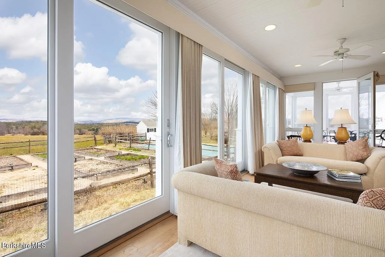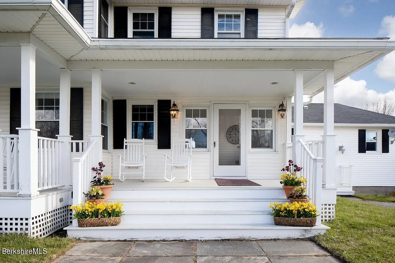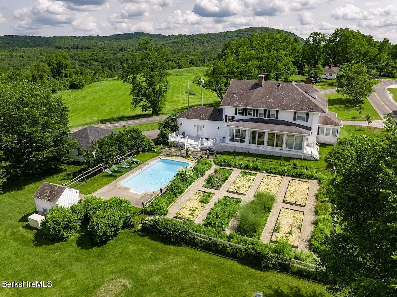 A beautiful 1912 farmhouse in Sheffield! 1669 Silver Street is on ten acres with fresh, clean renovations and windows that showcase long-range views of the surrounding hills and protected land. It's situated for wraparound views and really leans into that classic farmhouse feel, with white clapboard and a gabled silhouette, expansive gardens, and detached garage.