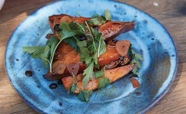 Meat and fish main courses include a small plate of stacked pork ribs ($24), dry rubbed with spices and served with a walnut amaro reduction. The restaurant also offers locally raised steelhead trout ($24), a grilled half chicken ($26), octopus ($22), and a 14-ounce ribeye ($46). Add a vegetable side, too — they're as thoughtfully prepared as the rest of the menu, like my roasted sweet potatoes with anchovy vinaigrette and currants ($9), which felt substantial and satisfying. None of the portions are massive, so do keep that in mind when ordering.