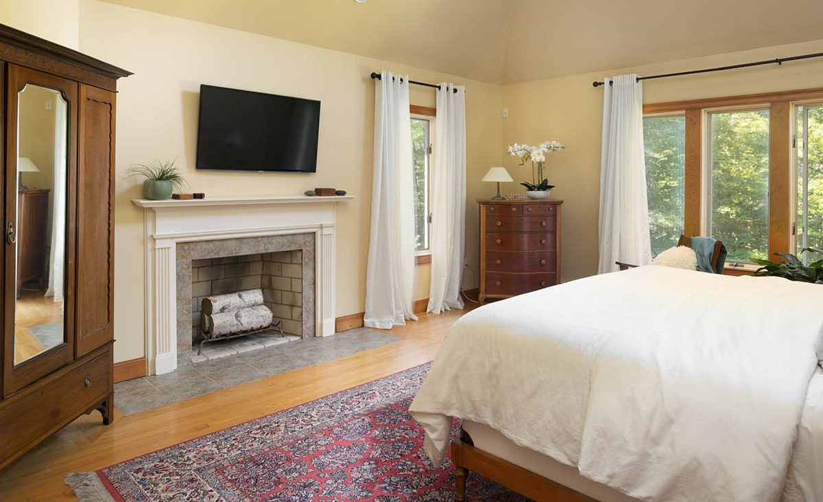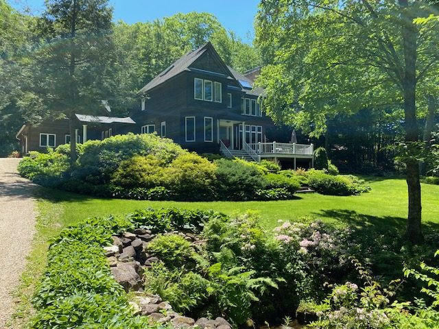 Fern Brook sits well back on the almost eight acres in Colebrook. There are three bedrooms and three bathrooms, an open, versatile layout, cathedral ceilings, three fireplaces, a wraparound deck and bluestone patio. Additional rooms include an office, family room and workshop. Outside there is a stream, pond, and stone walls. Listed at $745,000 by Elyse Harney Real Estate.
