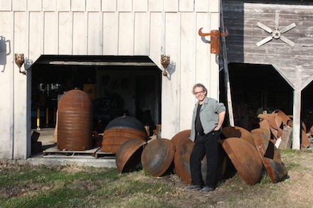 By Jamie Larson If there’s one thing that’s been noticeably absent this season, it’s the sound of people kvetching about the cold. But freezing temps are inevitable, and when they arrive, there’s warmth and beauty to be had in one of sculptor John T. Unger’s firebowls — firepits hand cut from recycled steel. A lineup of Unger's greatest hits await the cold behind his quiet home and less quiet metalworking studio in Hudson, NY. A firebowl with the original flame design sits beside one shaped with curling waves. There is also a collection of seemingly simpler geometrically cut firebowls, more architectural and elemental.