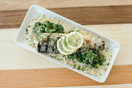 The menu is long on small plates (there are 20 interesting dishes alone under “Noshes” and “Just a Bite”) but features only five entrees and a couple of dinner specials. This allows for flexible dining — order two “Just a Bites” and you’ve got dinner — and easier plate sharing. While the mission, to “eat, drink, laugh and lounge,” makes Firefly an excellent place for friends to meet after work or for a quick bite before a cultural event, it’s also a serious fine-dining destination with entrees that are beautifully conceived and prepared. Grilled rainbow trout ($27), super fresh and perfectly cooked, was served with a lemony herb sauce over a flavorful corn and potato “risotto.” It was served in a narrow appetizer dish, which is neither good enough for this entree ($27) nor respectful enough of diners who need the margin of a larger plate to maneuver food as they eat.