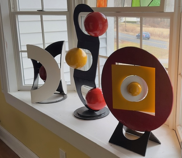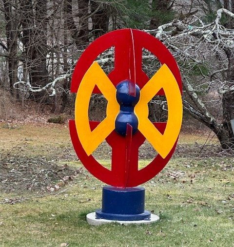 His artistic process is a testament to the transformative power of imagination and resourcefulness. The acclaimed Litchfield County artist uses these bits of metal joined sometimes with new pieces of metal to create large welded, polychromed metal sculptures that evoke the spirit of modernist innovation.