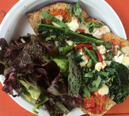 There’s nothing quite like a good flatbread -- particularly if you have access to a wood-fired oven or a cast iron skillet. Flatbreads lend themselves to any toppings that happen to be in season, and right now that includes spinach, scallions, oregano, and asparagus. We also used canned tomatoes from last year and we cheated a little and bought some basil, too. Gather all of your desired toppings beforehand, and use the hour needed for the dough to rise to prepare each of them. Enjoy! Flatbread 1 packet (2¼ teaspoon) active dry yeast 2 cloves garlic, minced (1 tablespoon) 1 tablespoon minced herbs (rosemary and thyme work well, but don’t limit yourself to those) ¾ teaspoon sea salt ½ teaspoon organic cane sugar 1¼ cups all-purpose flour ¾ cup spelt flour 1 tablespoon olive oil, plus more for coating bowl ¾ cup warm water 1. In a large mixing bowl, add yeast, garlic, herbs, sea salt, organic cane sugar, all purpose flour and spelt flour, and whisk. 2. Make a well in the dry ingredients and add olive oil and ½ cup (120 ml.) of warm water to start. Stir with a wooden spoon to mix. Add more water as needed until dough forms. 3. Transfer to a clean, well-floured surface and knead until smooth and elastic -- about 2 minutes -- adding more flour as needed to prevent sticking. 4. Wipe out mixing bowl and add a bit of oil. Roll dough around to coat and position seam-side down in the bowl. Cover with a damp towel or plastic wrap. Set in a warm place to rise for 1 hour. Once doubled in size, cut dough into 6 even pieces, arrange on a clean surface, and lay a damp towel on top. Let rest. 5. In the meantime, heat a large skillet (electric or cast iron) to medium-high heat. 6. One at a time, on a lightly floured surface, roll each piece of dough into a large circle that's fairly thin. 7. Lightly grease preheated skillet and lay down flatbread. Don’t touch, cook for 2½ minutes. Flip and cook for 2½ minutes on the other side. Repeat, adding more oil to coat surface, until all flatbread is cooked. 8. Top with fresh tomato sauce, mozzarella cheese and basil (or any toppings you desire) and enjoy immediately or let cool completely and store in a well-sealed bag or container up to 3 days (though best when fresh).