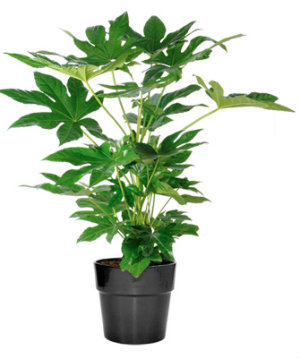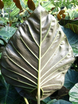 Be aware, though, that overwatering will cause geraniums to rot. I feel the soil to determine when to water. If it's dry to the touch, I water thoroughly. If it feels moist and cool: no water. Geraniums tolerate dry soil conditions better than excess moisture. I'll give them a haircut in the next couple of weeks as they tend to a bit get leggy in the low light of the indoors. If I prune them back soon, by about half, I'll be rewarded with a flush of new growth that will fill out before I return them to my deck after the temperatures are consistently in the 50’s. A couple of new plants I brought in from my summer containers are doing beautifully. They are Japanese aralia (Fatsia japonica) and an elephant ear (Alocasia). For the aralia, which was quite large by the end of summer, I divided it, ending up with two smaller plants. I cut them back so they would fit in reasonably sized pots. They've bounced back remarkably, with long, upright leaf stems holding large glossy, lobed leaves with pointed tips. The elephant ear is one of my favorites, called "Regal Shield." The dramatic pattern of dark veins in huge green leaves and the sculptural form of the plant are very pleasing. Both of these tropicals prefer a consistently dampish soil and can tolerate less bright light as they both do well in light shade outside, so I have them in east-facing windows.