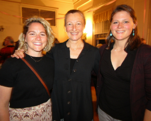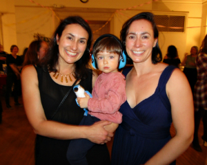 Amy Krzanik reports from Lenox. If you were in downtown Lenox this past Saturday night, March 25, and heard thundering drumbeats in the distance, they were coming from The Berkshire Bateria who were performing for a packed house upstairs at the Lenox Community Center. Flying Deer Nature Center had booked the band for its “Shake Your Tail” Dance Party fundraiser, and the crowd needed no extra encouragement to do just that. Supporters took to the floor to shake off the week to Bateria’s samba sounds. Volunteers served up snacks, brews from The Beer Diviner in Troy, New York, and signature Flying Deer cocktails such as The Tom Brown Collins, The Stalking Wolf Swizzle and Berkshire Bateria Sangria. Flying Deer Nature Center, located in New Lebanon, New York, is a nonprofit nature education organization offering summer camps, school and homeschool programs for kids aged 4 to 17, coming-of-age programs for adolescents, adult programs and corporate trainings throughout Berkshire and Columbia counties, as well as in the Albany and New York City regions. Proceeds from the dance party benefit the Center’s Financial Assistance Fund. [Above, Lily, a Bateria drummer, poses with Bella and Beatrice.]