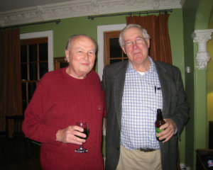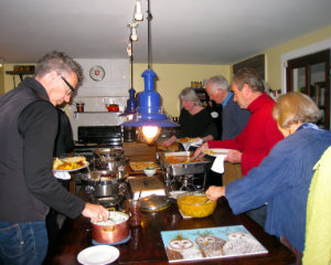 Lisa Green reports from Hudson. “The end — which is the beginning, really — is actually in sight," proclaimed Mark Orton, president of the Board of The Hudson Area Library, which (in case you haven’t taken your nose out of a book in while) is almost ready to move into its new home. As the final touches on the historic building — the former Hudson Armory — are being prepped for library patrons, the fundraising efforts continue apace, and on Sunday, Dec. 11, a group of supporters kicked off a new funding effort, the Hudson Area Library Food Chain. Bob and Marie Rasner, owners and innkeepers of The Inn at 240, along with Jack Simpson and David Murphy hosted the first dinner party in which the guests pay for the meal, with proceeds going to the Library fund. The Rasners cooked up an Indian feast at their bed and breakfast, but it could just as well have been burgers and fries or even a pancake breakfast. Hosts are encouraged to charge $20 to $100 per person and consider some library-related entertainment (book groups take note). Whether you’re a host or a guest, it’s a “novel" way to chase away the winter blahs and help put the finishing touches on the vastly new-and-improved library. Above, Ed Grossman and Mark Orton.