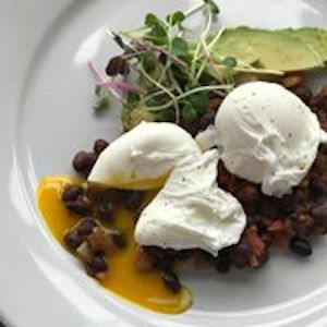 Breakfast is an ample offering that features huevos rancheros with avocado, baby heirloom tomatoes, black beans and cage-free eggs ($7.95); multigrain French toast with fresh berries ($7.95); and a breakfast burrito brimming with either scrambled eggs or tofu, cheddar or vegan cheese, salsa, black beans and tomatoes ($7). The appearance of “vegan” and “tofu” as alternatives in menu items underscores Eckstein’s emphasis on healthy eating and Jacobs’s flavorful execution of that vision. For those who want a lighter breakfast break — or replenishing refreshment after a workout — the smoothies are worth a visit in themselves. What better way to start the day than with a mango-banana smoothie with hemp seeds or a coffee-maple shake? Lunch offers a two-sided menu. One side invites those who identify themselves as “herbivores.” Flip the sheet over, and “carnivore” invites your attention. On the herbivore side, a tasty avocado toast on grilled baguette with tomato, balsamic drizzle and micro greens tops the list ($8), followed by several salads with ingredient choices from beets, kale and baby spinach to chickpeas and red onions. Prices range from a simple house salad at $6 to $11 for each of the more sophisticated offerings. If a sandwich is more your midday style, then the “Melty Goodness” offers cheddar, gruyere and mozzarella with spinach, tomato and carmelized onions ($9).
