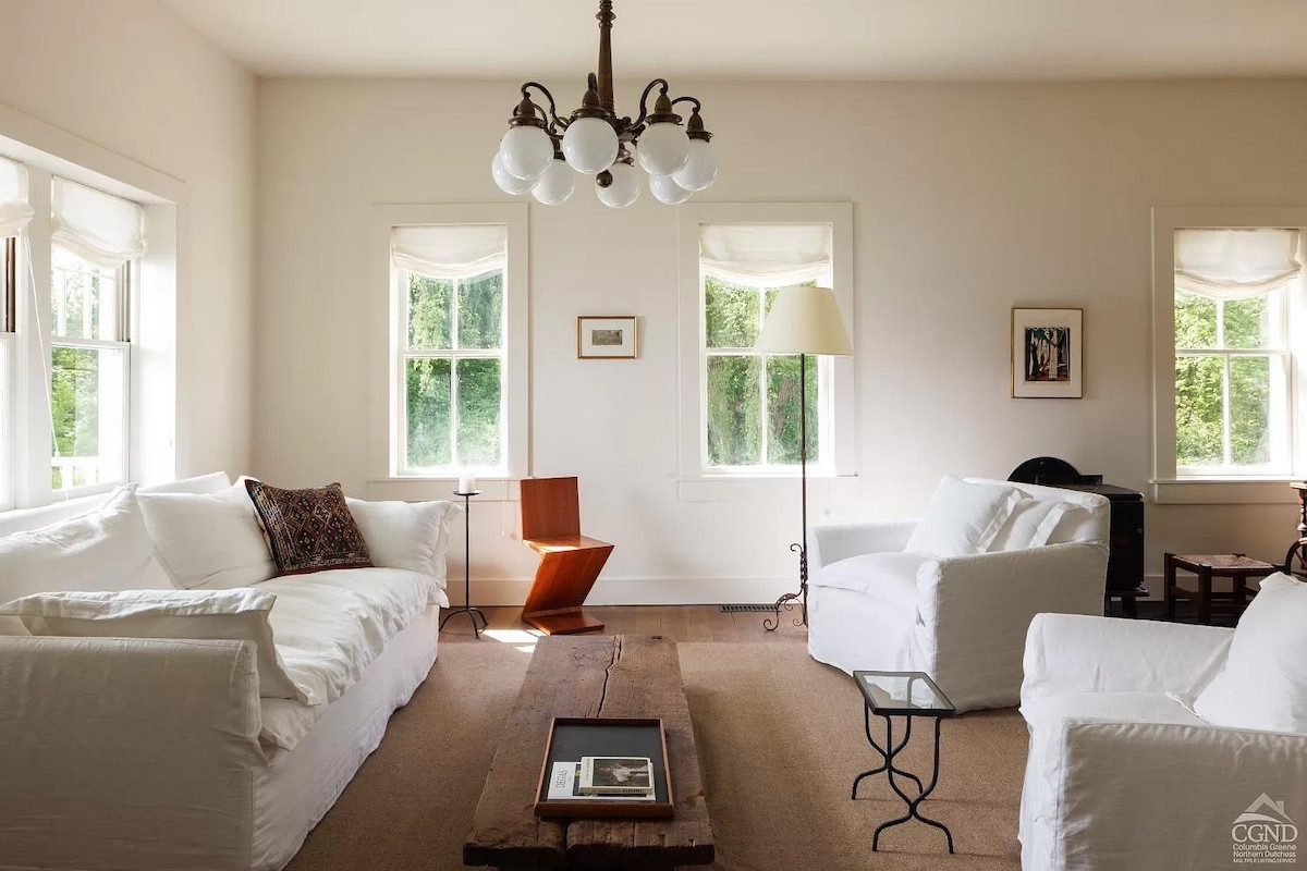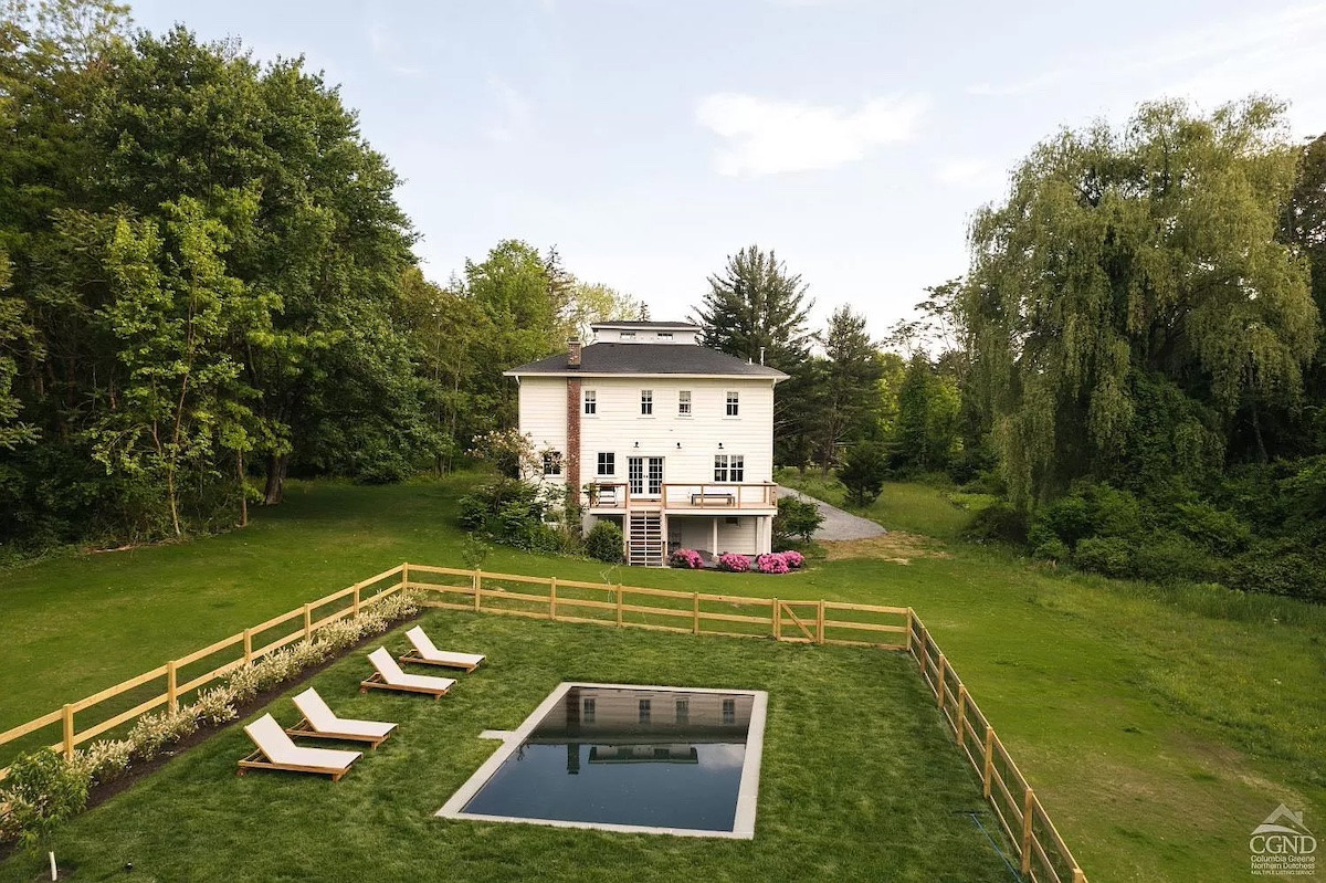 A sprawling farmhouse sits on ten acres in Red Hook.