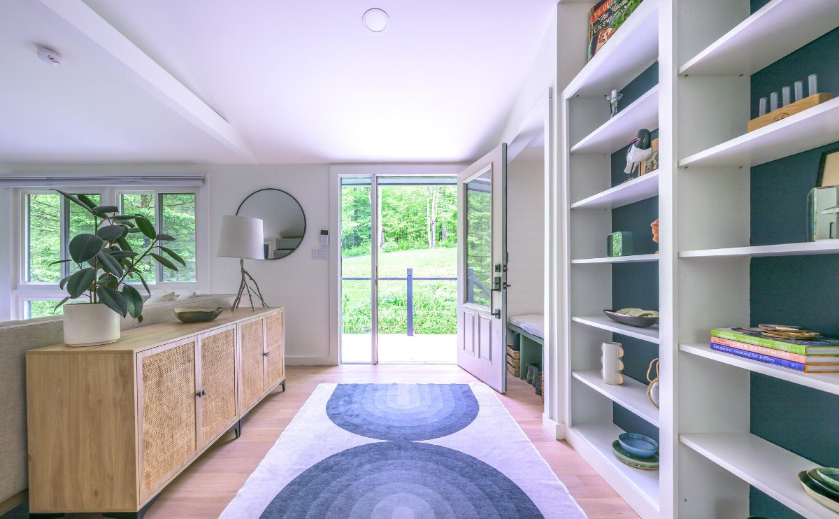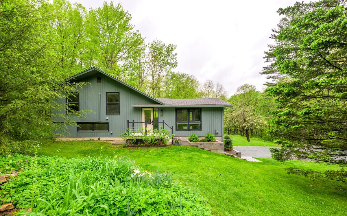 This Lenox Contemporary offers three bedrooms and two bathrooms on a 3.6-acre lot. The kitchen features stone countertops, a large island and handmade Moroccan tile backsplash. The primary suite includes an airy shower and new double vanity, plus the bedroom's own screened-in porch and deck. State forest, hiking trails, and the Roaring Brook Waterfalls are just a walk away. Listed at $649,000 by Stone House Properties.