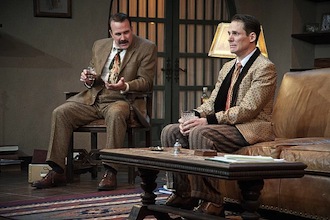Photos by Kevin SpragueBy Jeremy D. Goodwin With friends like this, who needs enemies? The simplest reference to famed literary frenemies F. Scott Fitzgerald and Ernest Hemingway conjures a sense of Jazz Age glamour, a romantic notion of novelists as pop stars, living off the largesse of their rich friends while the culture careened unsuspectingly toward a devastating crash. Indeed, Hemingway thought Fitzgerald romanticized the rich, though just a glance at The Great Gatsby reveals a more nuanced view of the emptiness that can eat at the foundations of even the best-preserved artifice. What’s sometimes forgotten now is that Fitzgerald died in 1940 an apparent failure, creatively washed up and a seeming anachronism in a time of economic uncertainty and darkening war clouds. He made a living writing short stories and essays for magazines, cultivating a bit of a sad-sack persona and making three separate, unsuccessful attempts at success as a Hollywood screenwriter. He was working on a fifth novel at the time of his fatal heart attack at age 44, unaware he’d later be lionized as one of the great literary voices of the century. For his engaging new play Scott and Hem in the Garden of Allah, Mark St. Germain imagines a final meeting between Fitzgerald and Hemingway, while Scott was writing away on an MGM assembly line of sorts (he’s aghast to hear his latest script pages described as “spare dialogue" in case the actors don’t like their original lines) and his garrulous old friend was riding high on popular success. The piece is St. Germain’s seventh world premiere at Barrington Stage Company (it was produced in July for the first leg of a two-part, “rolling" world premiere), and his first since the company’s second stage was named after him last year. In a twist, he also directs this one as well.