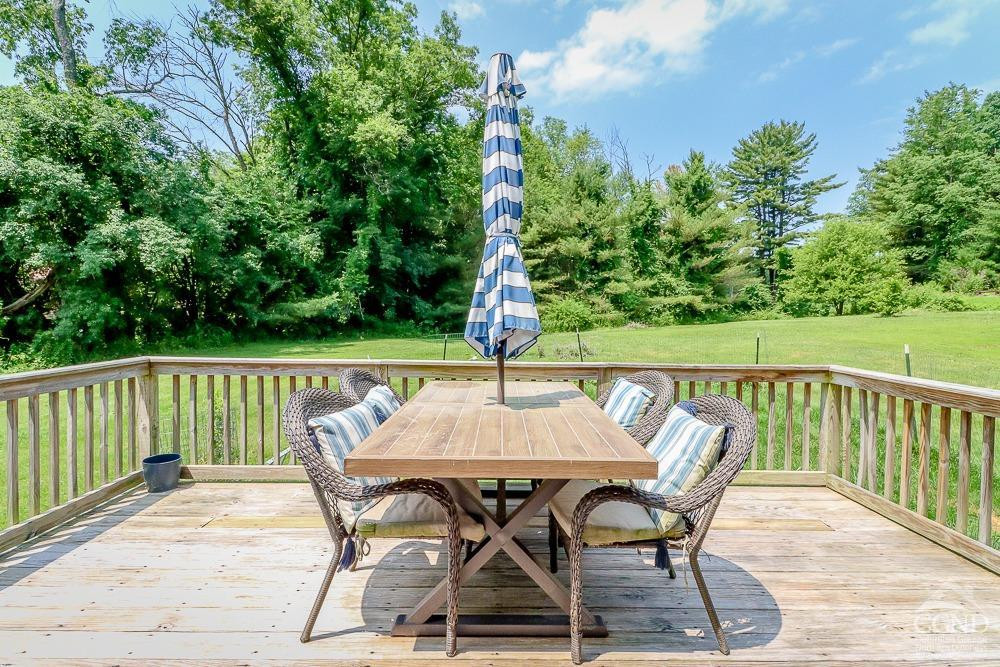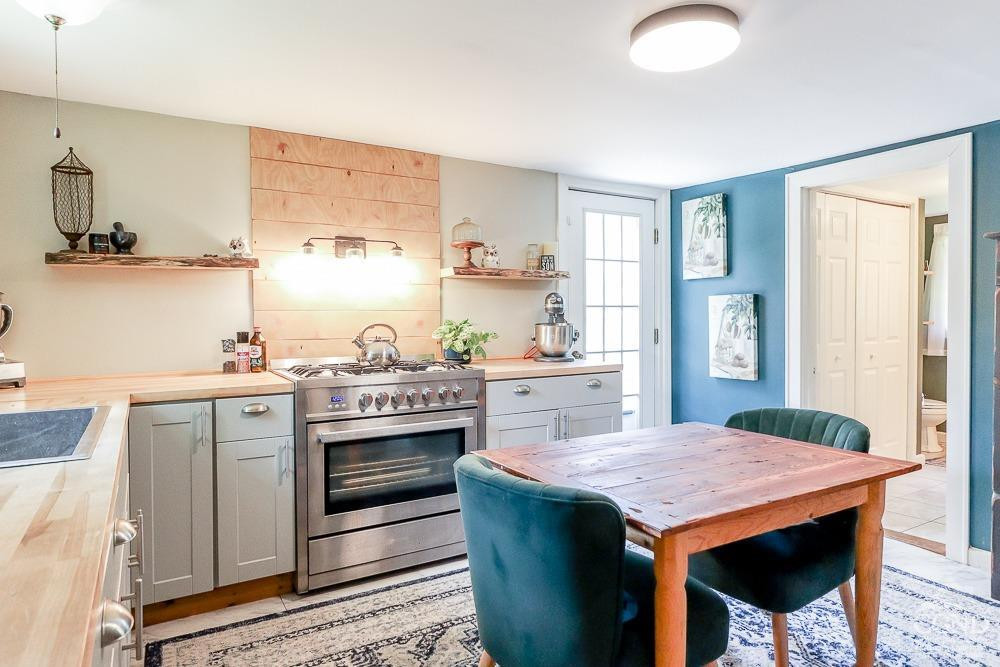 In Canaan, New York, the two-story renovated country cottage with a front porch offers two bedrooms and one bathroom in 1,100 square feet. Sited on 2.6 acres, the home includes a pellet stove, new kitchen, and a back deck. A large two-story barn needs finishing and could be used for a studio, guest quarters, or farm animals. Listed at $338,000 by Beach & Bartolo.