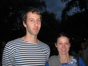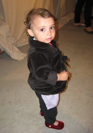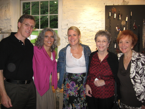 Art jewelry lovers of all ages and persuasions, including 15-month-old Kestrel Miro Duke (left), gathered at Suky Werman's Barn Gallery at Stonover Farm on Friday evening for the opening reception of a show of (mostly) jewelry by Israeli artists. Leslie Ferrin of the Ferrin Gallery in Pittsfield also has an installation in Werman's commodious space of works by the potter Emmett Leader that include a small and enchanting garden room, filled with Judaica. Tom Werman, preoccupied with parking complications (wet ground having rendered their usual meadow/parking lot a swamp) never made it to the opening. Presumably, he showed up later for the rhythm extravaganza upstairs in the hay barn, featuring the Berkshire Batteria.