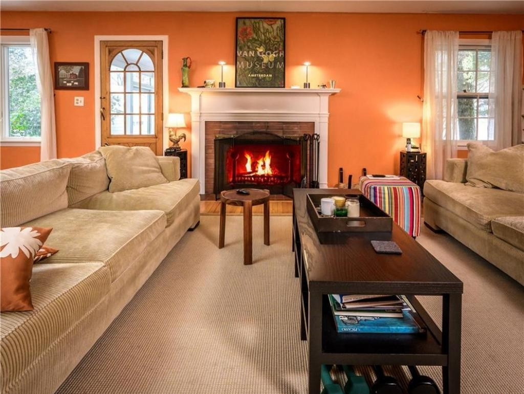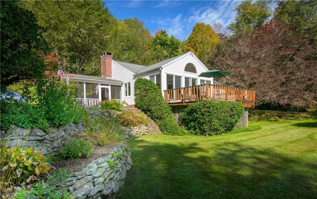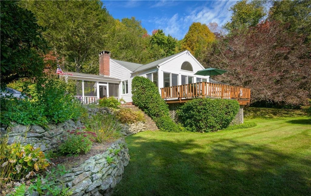In Kent, this 1960s home offers three bedrooms and five bathrooms, a sunroom, private office and screened-in porch. A pool is hidden in the secret garden with 60-year-old rhododendrons and abundant annuals. Winding paths along ancient stone walls lead to walks in the woods. Listed at $745,000 by Bain Real Estate.