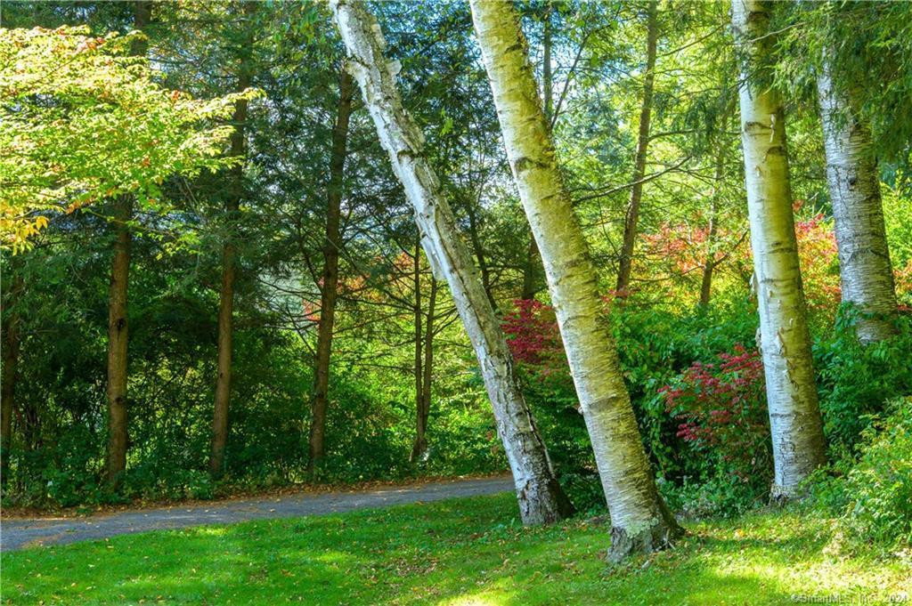 A single-level home in Kent offers privacy and and paths to a woods full of bird life.