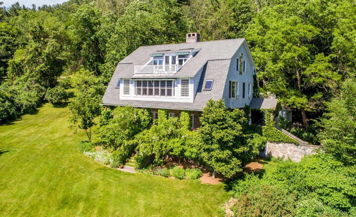 Designed by noted artists Seymour Chwast and Paula Scher, this Arts and Crafts home is perched by Twin Lakes in Salisbury. The house opens to a gracious foyer which leads to the newly renovated chef's kitchen (with top-of-the-line appliances) adjacent to a formal dining room. A Craftsman-style living room opens to the dramatic ivy-covered wraparound porch. There are three working stone fireplaces, and a great room with a wall of windows that provides additional lake views. The house has four bedrooms, three bathrooms and a spacious third floor currently used as an art studio. The property has a heated inground pool and guest cottages, both with kitchens and ample storage space. Listed for $1.249 million by William Pitt Sotheby's International Realty.