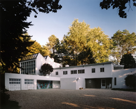 Fortunately, George's father was somewhat more indulgent, permitting his son to built a studio in a remote corner of the Brookhurst estate. The first avant garde building of any kind in New England, its design was inspired by the one by LeCorbusier at which George had studied in Paris. Much later, he and Suzy would add an International Style house to the studio. For the remainder of their lives, Suzy and George spent summers and weekends there.