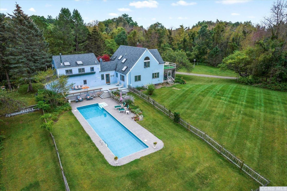 There's a pond on the property of a home on Summit View Lane in Hudson, but you'll probably prefer to swin in the lap pool. The house has four bedrooms and three bathrooms, cathedral ceilings, a wood-burning fireplace in the great room, and a loft walkway that connects two of the bedrooms.There's also a screened-in porch. Listed at $995,000 by Four Seasons Sotheby's International Realty.