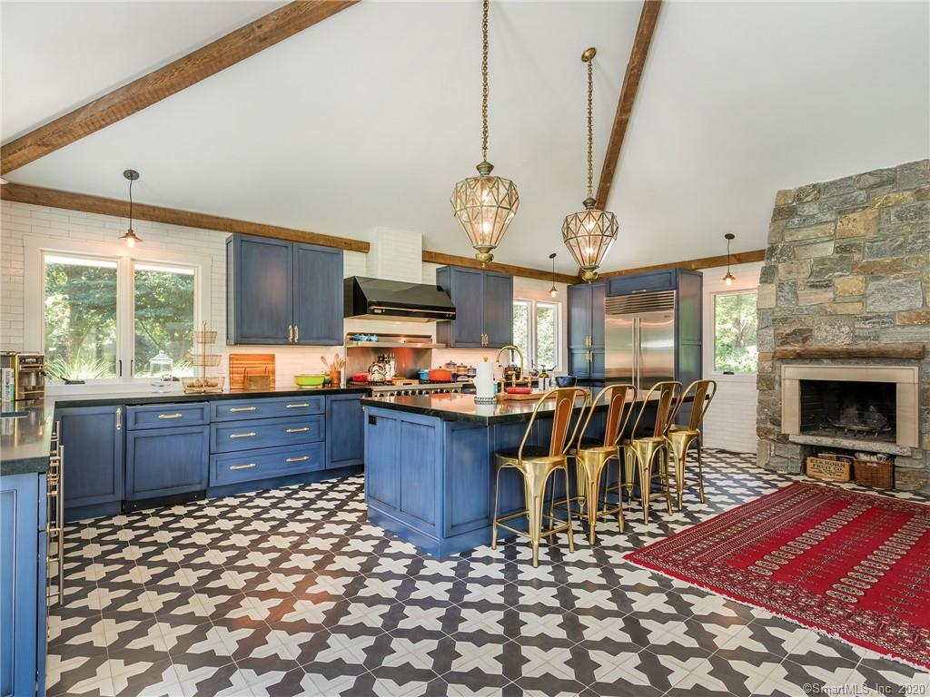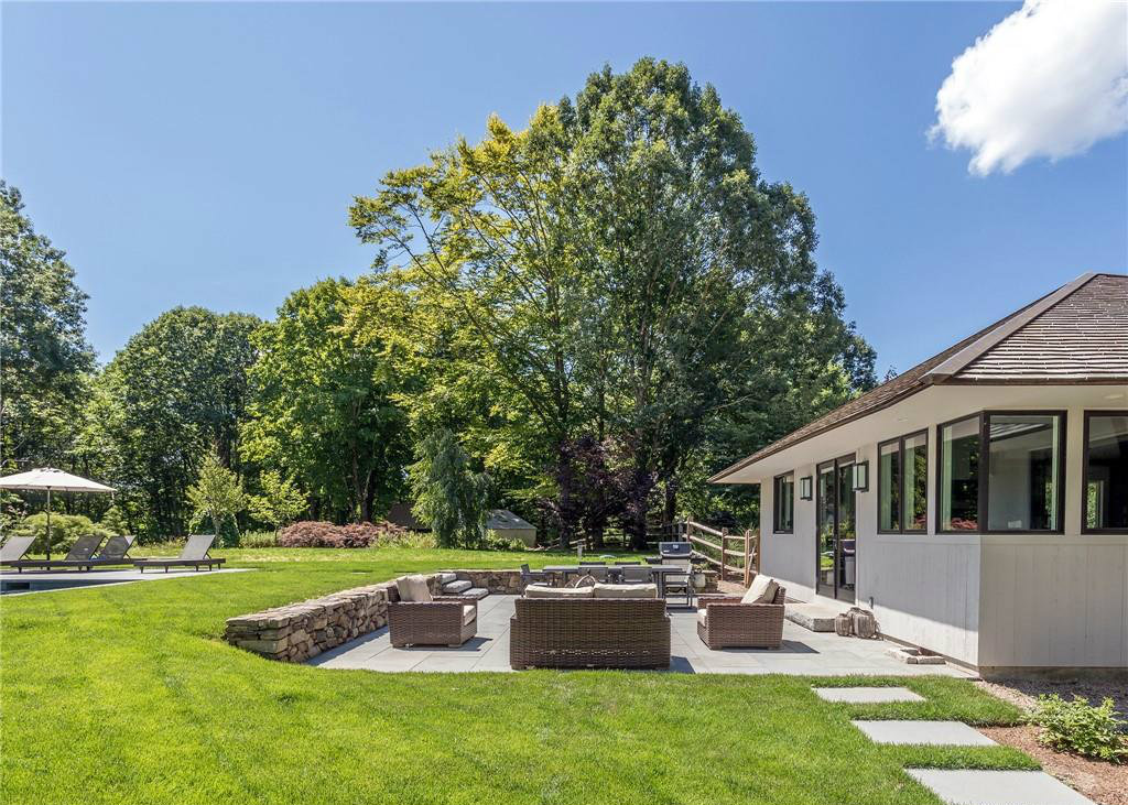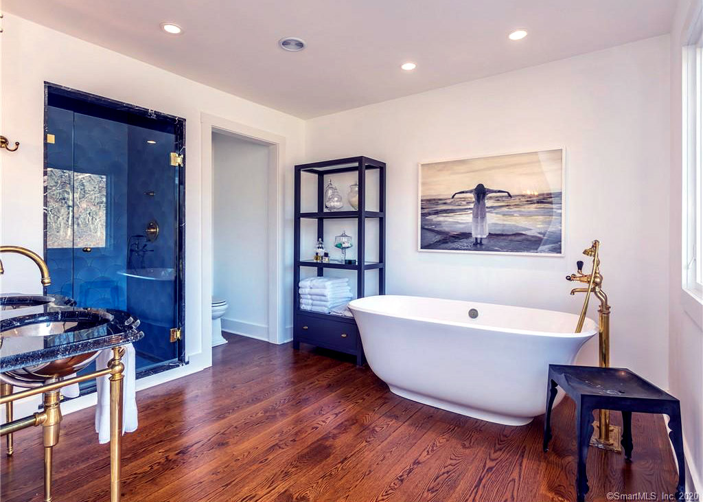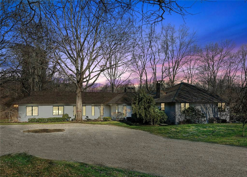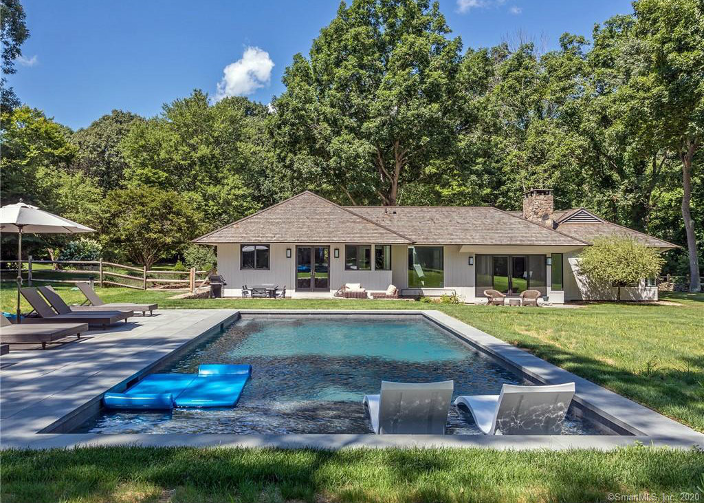 A long circular drive leads to a private setting and this single-floor home in Washington designed by notable modernist architect Andrew Geller. There are three bedroom suites and three-and-a-half luxury bathrooms. The showstopper kitchen ffeatures Wolf and Sub-Zero appliances and soapstone counters. There is a new heated pool, studio/guest house and separate three-car garage. Listed at $1,995,000 by The Matthews Group.