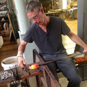 In addition to the studio downstairs, an airy gallery upstairs showcases Greenwood’s stunning work. A cobalt blue chandelier, a large table, lighting – all made of glass, of course – are on display and for sale, as well as smaller items such as water pitchers, goblets and pumpkins, a holdover from fall. Candy-colored swirls of glass can be seen in every part of the room. Items range in cost from $5 to $25,000. If you’re busy this weekend, it’s worth a visit on another day. Born in Hartford, Greenwood is a graduate of Rhode Island School of Design and came to the glass blowing discipline in 1979. His work has been shown in museums and galleries throughout the world, including The Louvre in Paris, The Bruce Museum in Greenwich, CT and the Dayton Art Institute in Dayton, Ohio. His glassworks are also in numerous private collections. Just as your self-made glass ornament can be a part of yours. Glass-blown Holiday Ornament Workshop Peter Greenwood Glass Blowing Studio and GallerySaturday, Dec. 4, 11 a.m. to 4 p.m. 3 Robertsville Road, Riverton, CT (860) 738-9464