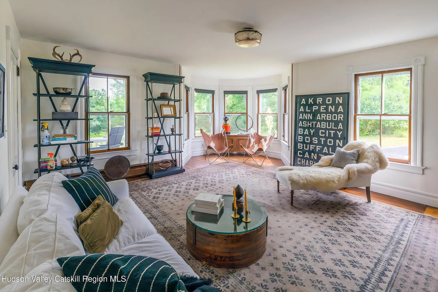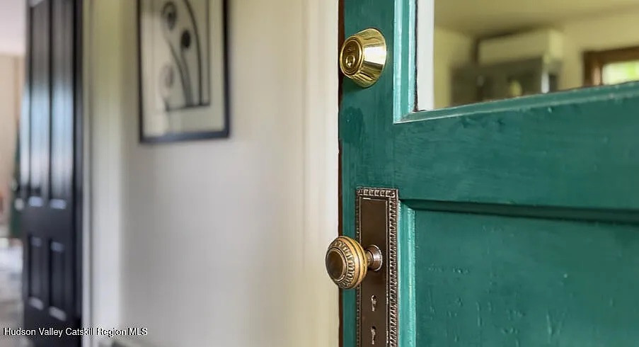 This is one of those quintessential Hudson Valley farmhouses: 95 Lower Post Road in Ghent is 2,941 square feet, sits on 36.45 acres, and was built in 1898. It has tons of drool-worthy details: a big, welcoming front porch with columns, a turret with a weathervane, and a newer-looking green metal roof.