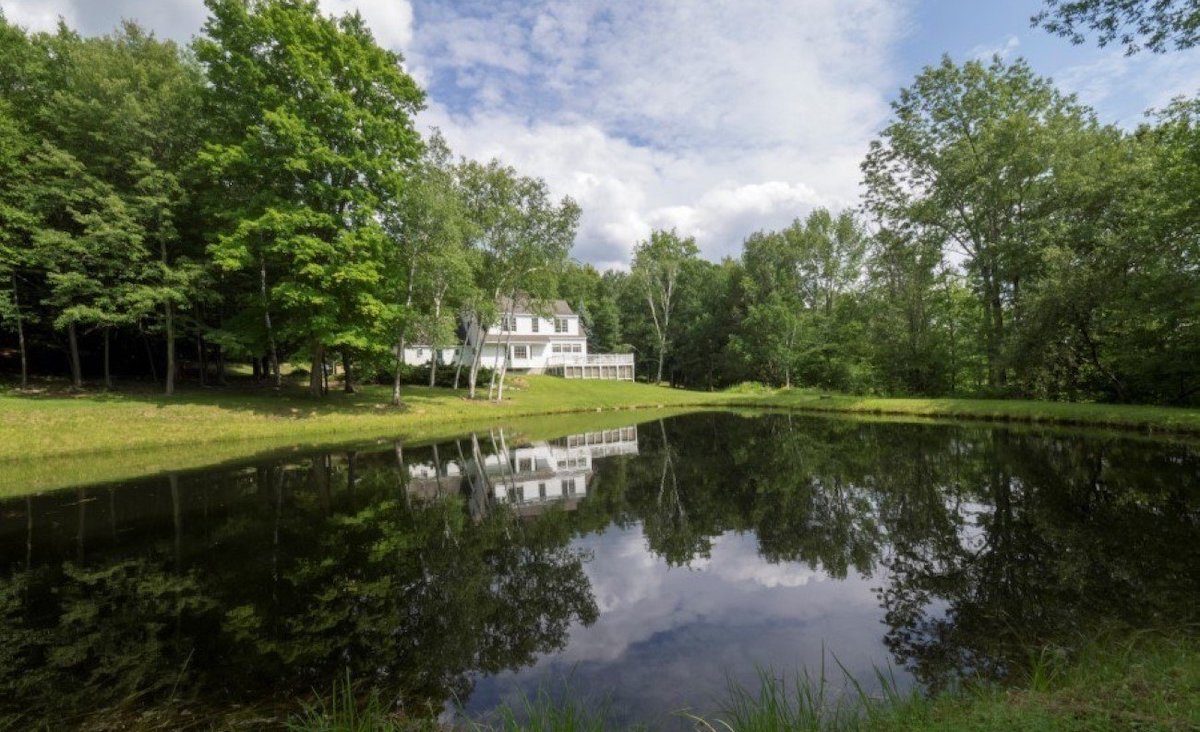 This lovely Cape has all the charm of an antique, but with updated mechanicals and the proportions of a newly built home. It's located in Sharon on nine private acres overlooking an all-natural and ecologically balanced picturesque pond. The interior has pine floors throughout, fireplaces and exquisite architectural details. There are three bedrooms and three bathrooms. A stream running through the property can be enjoyed from the spacious back deck. Listed for $695,000 by Elyse Harney Real Estate.