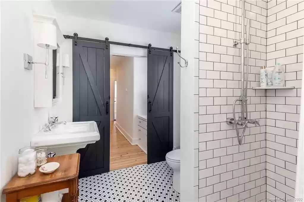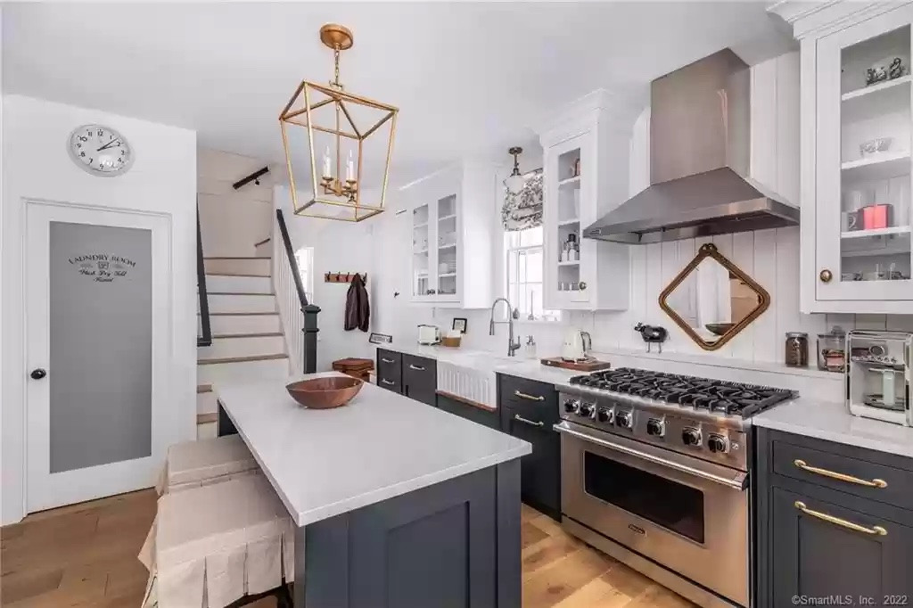 A four-bedroom, three-bathroom farmhouse, built in the 1860s, is located in an area of Washington estates. The kitchen is equipped with Viking appliances, quartz counters and custom hardware from England, plus a pantry. There is room for expansion in the walkup attic as well as space above the two-car garage. Listed at $1,350,000 by William Pitt Julia B Fee Sotheby's International Realty.