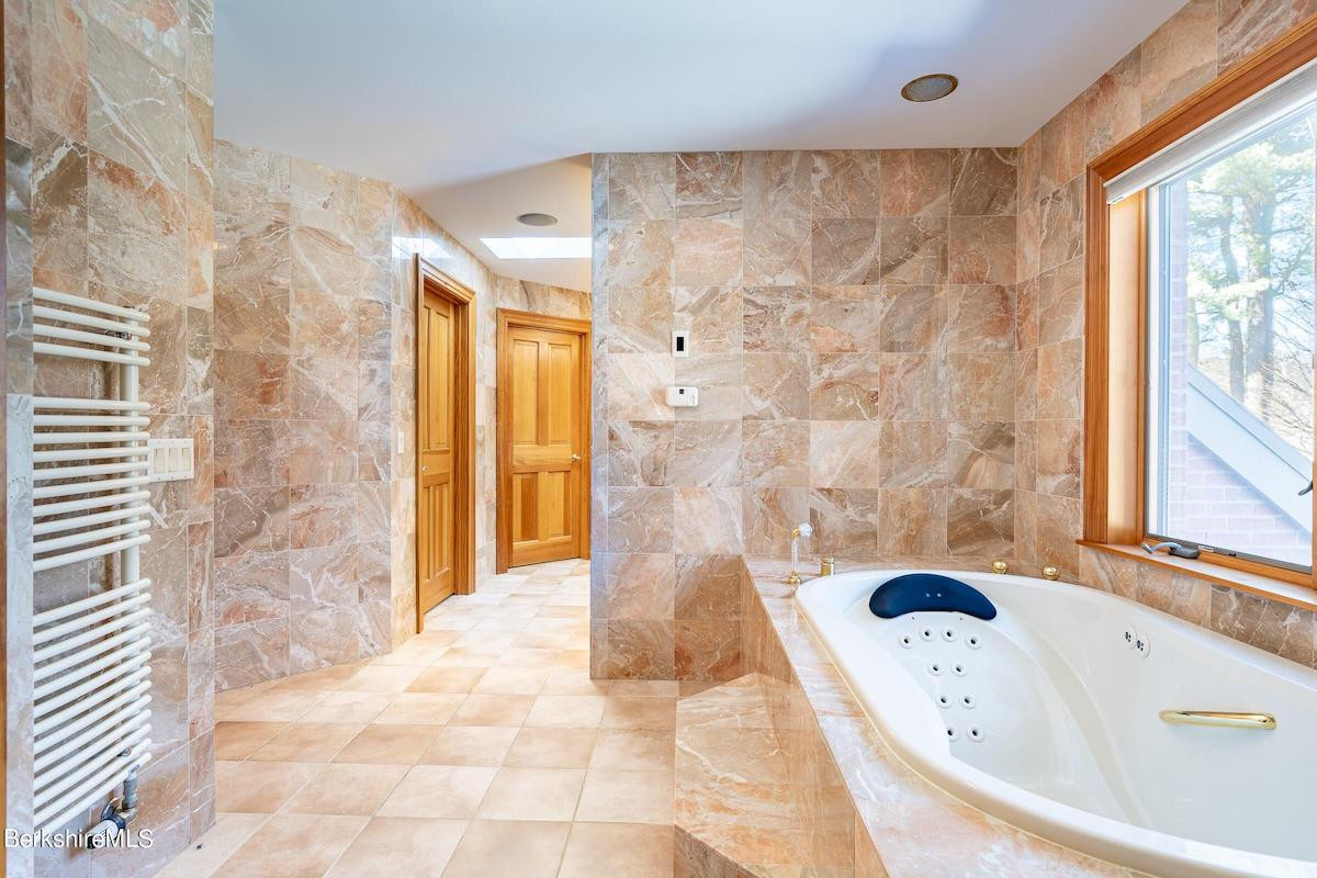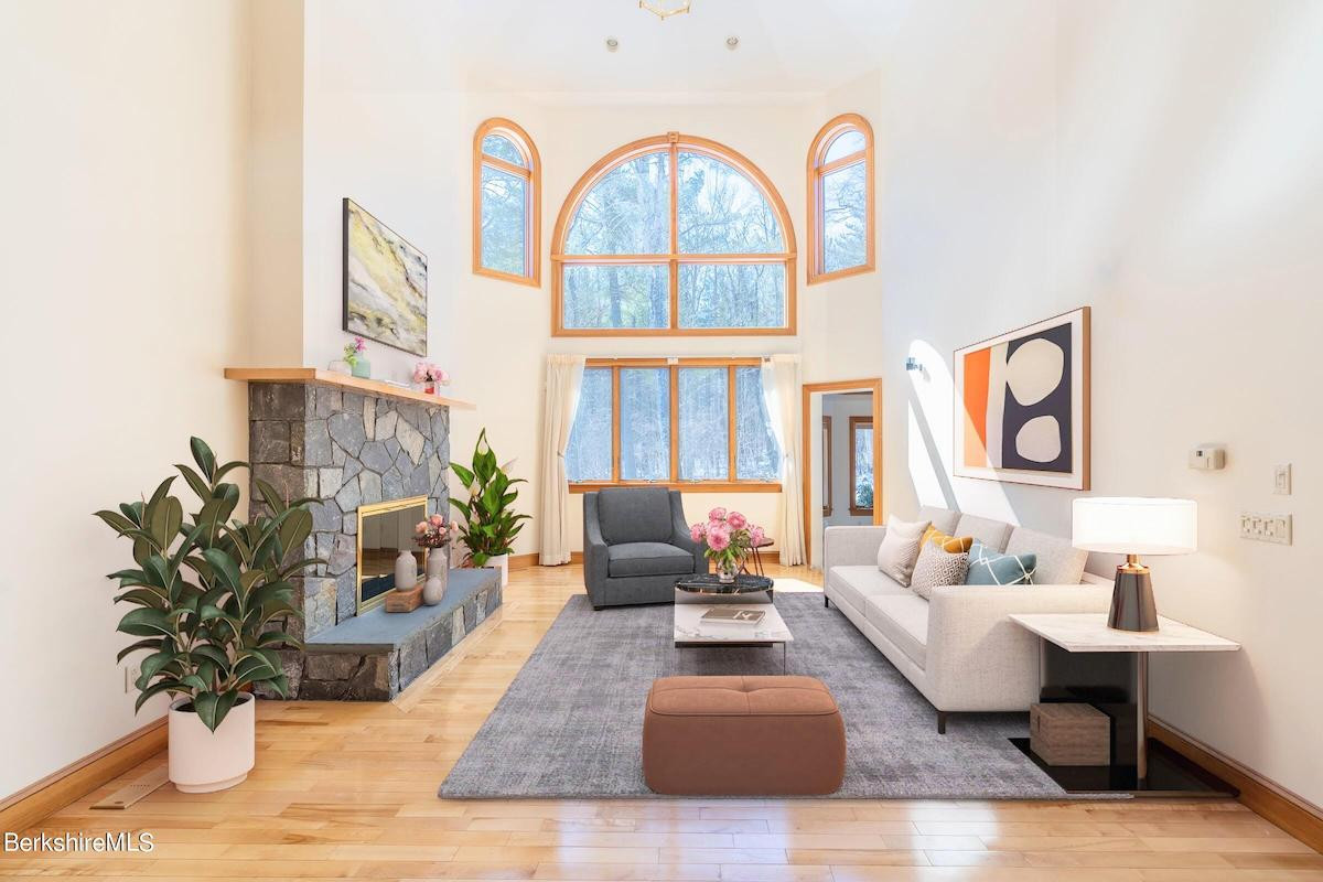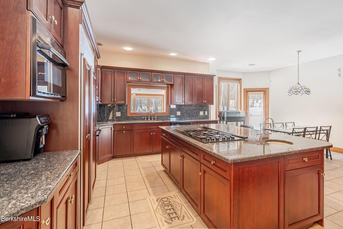 Sited on 1.3 acres in Pittsfield, this nearly 4,4500-square-foot home has five bedrooms and five bathrooms, a chef's kitchen with commercial-grade appliances and granite countertops, walk-in closets, a finished basement/media room, and even heated sidewalks. The attached garage holds three cars. Listed at $899,900 by Bishop West Real Estate.