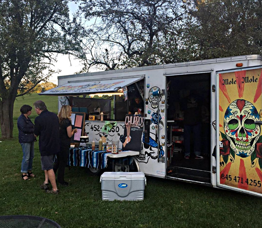 Their new outdoor space and food trucks have made Grand Cru into a more family-friendly spot, with people of all ages bringing blankets and chairs and spending warm evenings hanging out, eating and playing lawn games. Johnson, a former nature educator, even offers an occasional impromptu nature program for the kids. Edible Roots, Frites of NY, Farmers & Chefs and Heather Ridge Farm have stopped by to serve food, with Valia’s Wood Fire pizzas and fresh seafood from Off the Hook coming up. In the winter, Grand Cru will still offer food pop-ups, with meals served inside.