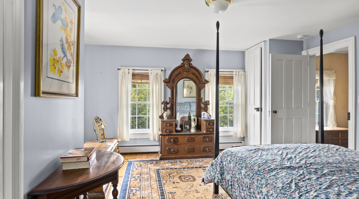 Built in 1860 and sited on 35 acres in Chatham, this Italianate estate offers four bedrooms and three bathrooms, a spacious farm kitchen, formal dining room, library, multiple fireplaces and stairways that take you to the kitchen and the cupola. The three-stall horse barn includes a heated tack room and there are multiple paddocks. Listed at $1,495,000 by Anderson Agency Real Estate.