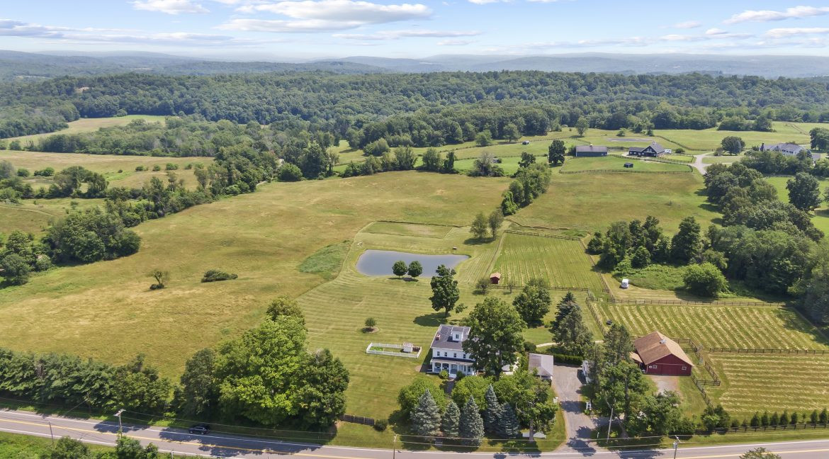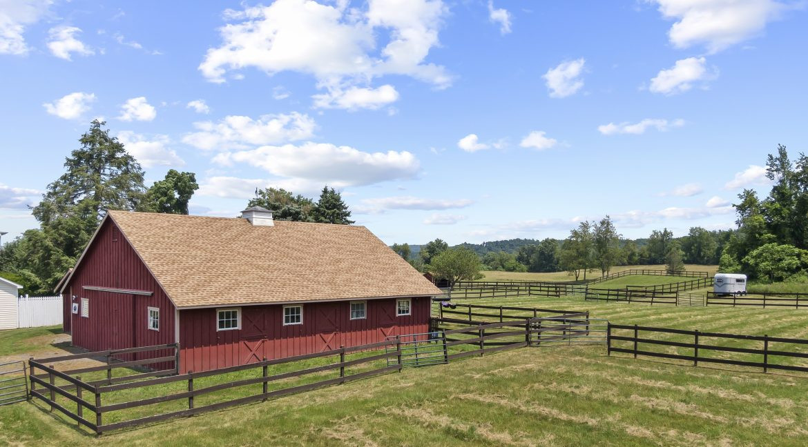 An elegant country estate in Chatham comes with a horse barn, paddocks, and separate studio/office building.