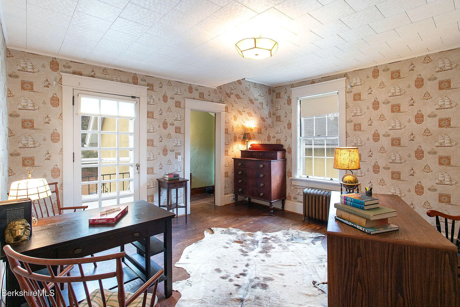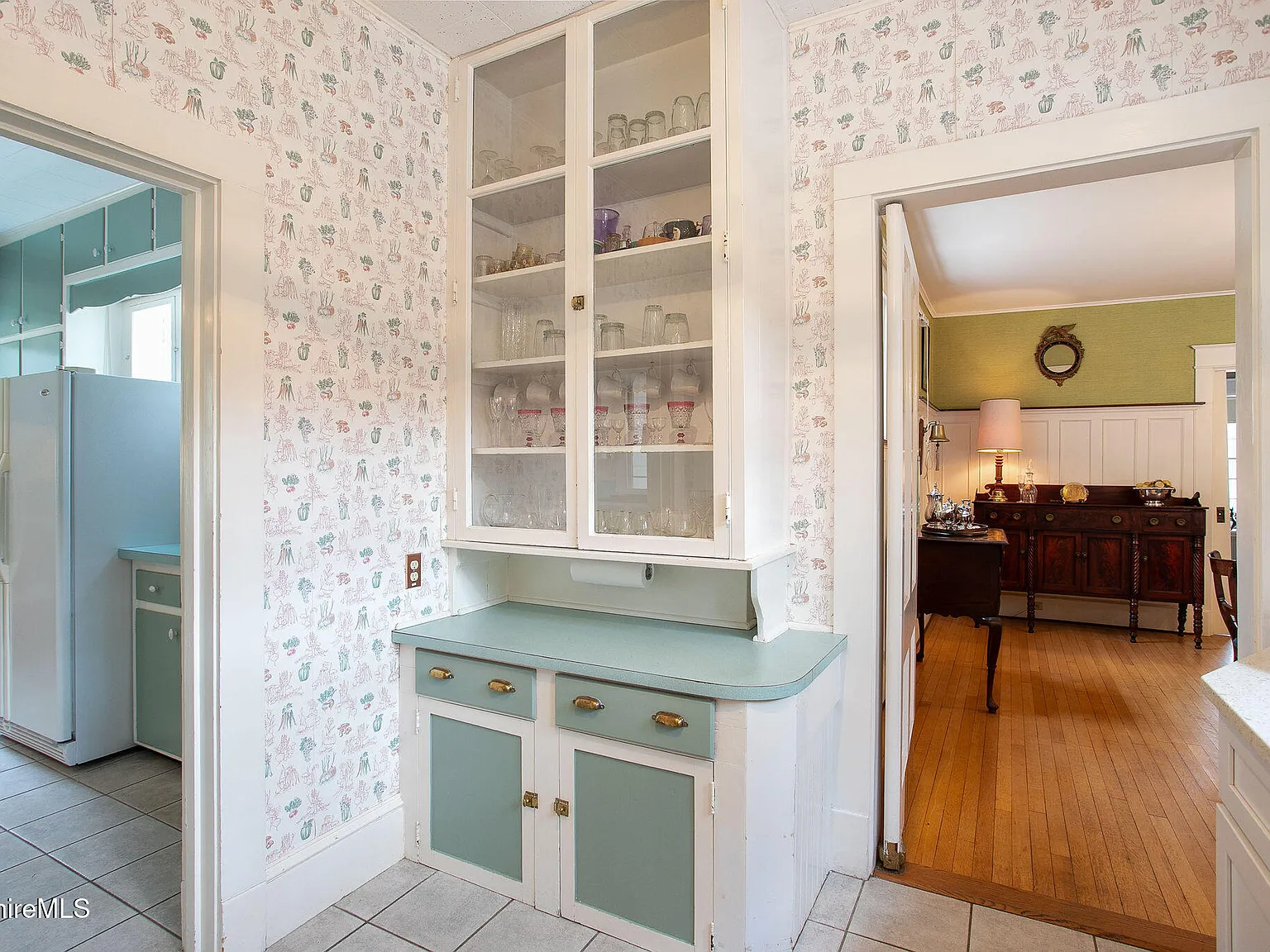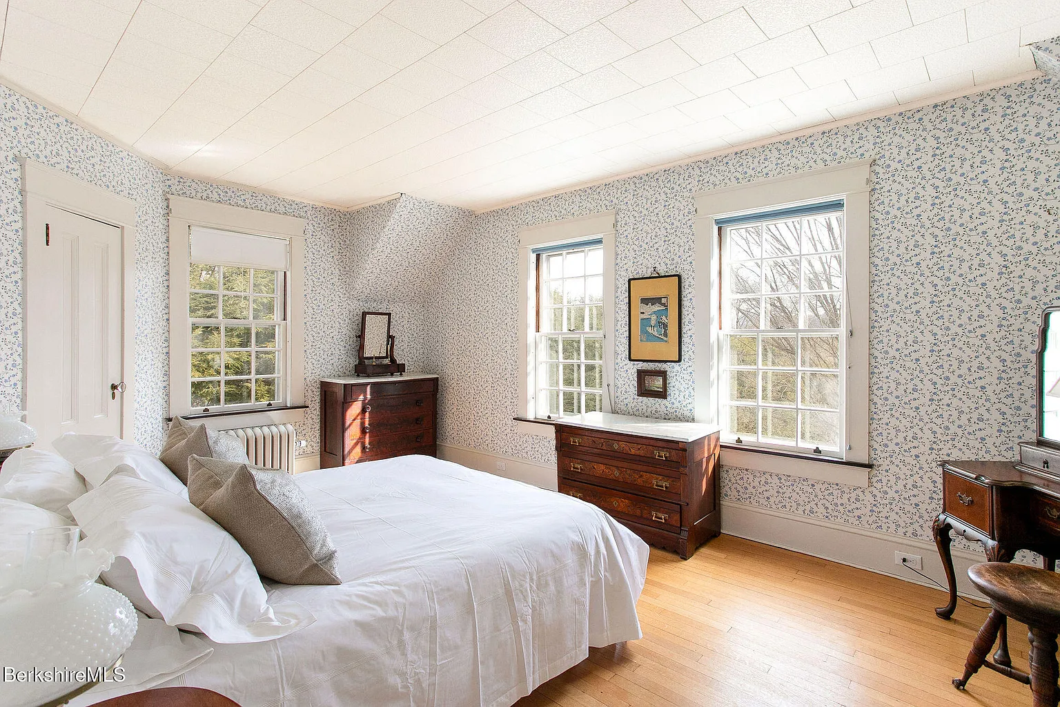 Notably, this home is full of cool vintage wallpaper, with botanical motifs in the butler's pantry, ships and flowers in the bedrooms, and a tile-inspired square design in one of the bathrooms. It's rare to see this classic turn-of-the-century aesthetic in older homes that cross the $1 million mark, especially so well-preserved.