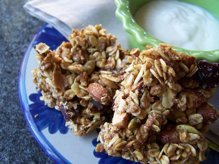 And now for something completely different. For the past few weeks, we’ve been focusing on seasonal goodness with recipes that celebrate the veggies from our gardens and nearby farms. And if you'd like more of those kinds of recipes, we’ve got eight years worth of recipes in our archives, which you can find here. But sometimes, you’ve just got to have a snack. One that’s crunchy and sweet and made entirely to your tastes. Dawn Masiero of Guido’s Fresh Marketplace in Pittsfield and Great Barrington has offered this one, created by Cathie Kavanaugh of Guido's Kitchen, which uses Bola Granola (a Berkshire product) and Old Chatham Sheepherding Company Ginger Sheep’s Milk Yogurt (a Columbia County treasure) as a dipping sauce. It's so easy: mix, bake, cool…and in no time at all you can be happily crunching away. --Lisa GreenGuido's Granola Bars With Ginger Yogurt Dipping SauceMakes 16 bars 16 oz. bag Bola Granola (chop the whole almonds if they are too big for your liking) 2 tbsp. unsalted butter, plus extra for pan 1/3 c. honey 1/4 c. dark brown sugar, packed 1 1/2 tsp. vanilla extract 1/2 tsp. kosher salt 1/2 c. chopped pitted dates* 1/2 c. Guido’s tart dried cherries* Dipping sauce: Old Chatham Ginger Sheep’s Milk Yogurt Preheat oven to 300 degrees. Butter a 9 x 9 inch glass baking dish and line with parchment paper. Combine the butter, honey, brown sugar, vanilla extract and salt in a medium saucepan and place over medium heat. Cook until the brown sugar has completely dissolved. Pour Bola Granola into a mixing bowl and add the dates and cherries (or dried fruit of your choice). Toss with the warm butter mixture. Stir to combine. Turn mixture out into the prepared baking dish and press down, evenly distributing the mixture in the dish. Place pan in the oven and bake for 25 minutes. Remove from oven and allow the bars to cool. Let rest at least 2 to 3 hours before cutting into squares. Serve with the yogurt as dipping sauce. *You can use any combination of dried fruits, such as cranberries, raisins, apricots, blueberries, etc.