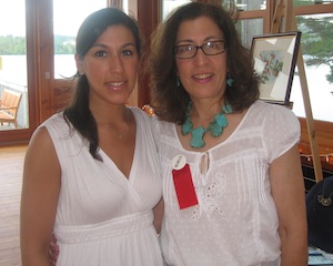 Rachel Louchen reports from Salisbury. On Saturday, July 13, the recently built Boathouse at Salisbury School served as a fitting location for a fundraiser to benefit Habitat for Humanity of Northwest Connecticut, which has been building affordable housing in the area since 1991. Funds raised at the the wine and beer tasting and silent auction will allow Habitat to continue to help low income families in the area with housing, offering zero-interest mortgages and organizing volunteers for construction. In total, they have completed eight homes, are nearing completion on two others, and have recently purchased an 11th in Canaan. Guests sipped on beer from Barrington Brewery and wine from The Cornwall Package Store as they bid on goods such as a week's stay in Cape Cod and an Icelandic lamb from local farmer Sam Waterston, and enjoyed one-of-a-kind views of Lake Washinee and Salisbury sunset. But the real treat for all involved was news of a Norfolk family's plan to soon move into their Habitat house, and the continued success of the organization. At left, Board President Tracey Atwood with the Executive Director Dawn Whalen.