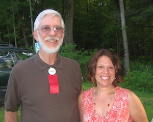 Margaret Doyle with former board member Hank Rosler; Attorney Anthony Nania gave guests rides down the gravel road to the boathouse.