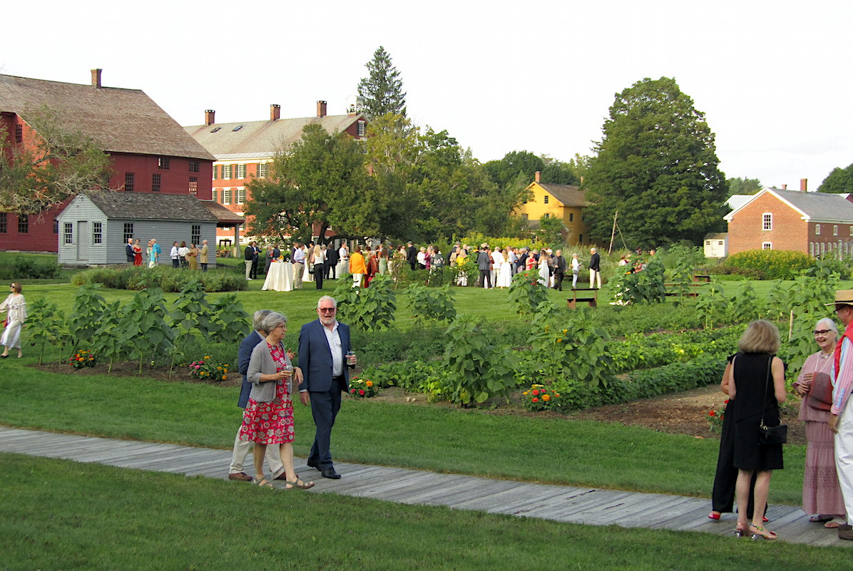 It normally wouldn’t be too much to ask to enjoy sunny Berkshire weather on the day of your August event. But the summer of 2023 has been wet—really wet—in New England, and to have clear skies on Saturday, Aug. 12 was lucky indeed for Hancock Shaker Village. Although thunderstorms were in the forecast, this year’s Summer at the Village gala was a sun-dappled affair. Cocktails on the lawn were followed by dinner catered by Mezze and a live auction of art and experiences in the tent. Guests were treated to live music by The Lucky 5 during the cocktail hour and a set by Will Evans during dinner.
