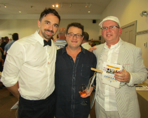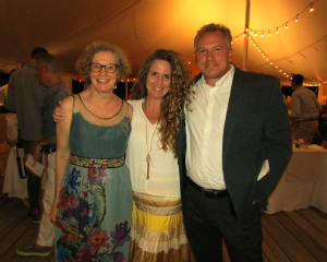 Amy Krzanik reports from Pittsfield. It was a hoedown scheduled on what turned out to be one of the steamiest (and later, summer-stormiest) of the year, but that didn’t stop supporters from flocking to Hancock Shaker Village’s Summer Revival on Saturday, Aug. 20. Much of the credit for the fantastic turnout goes to this year’s gala co-chairs, Darin Johnson and Greg Keffer, who more than doubled 2015’s attendance. Guests nibbled on artisanal cheeses and charcuterie in the Shaker Gardens, and feasted on a farm-to-table meal prepared on site by Fire Roasted Catering. Dessert — adorably decorated mini cupcakes and delicious banana pudding — was provided by NYC’s Magnolia Bakery. A silent auction featuring trips, dining experiences and Shaker collectibles led into a live auction which offered private dinners prepared by popular local chefs David Wurth and Brian Alberg. Money raised will go to support the Village’s daily operations and educational programming, while the “cause-within-a-cause” part of the live auction will fund the restoration of the Shaker Brick Dwelling, considered an architectural icon, and other historic buildings. A special musical performance by The Lonely Heartstring Band out of Boston, Mass. capped off the successful evening event. [Above, HSV trustee and gala co-chair Darin Johnson, Kathy Cain, HSV president and CEO Linda Steigleder and gala co-chair Greg Keffer.]