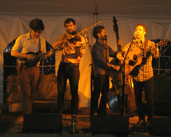 The Lonely Heartstring Band, from Boston, Mass., entertains the crowd under the tent.