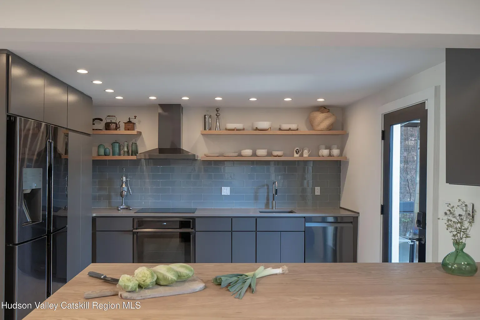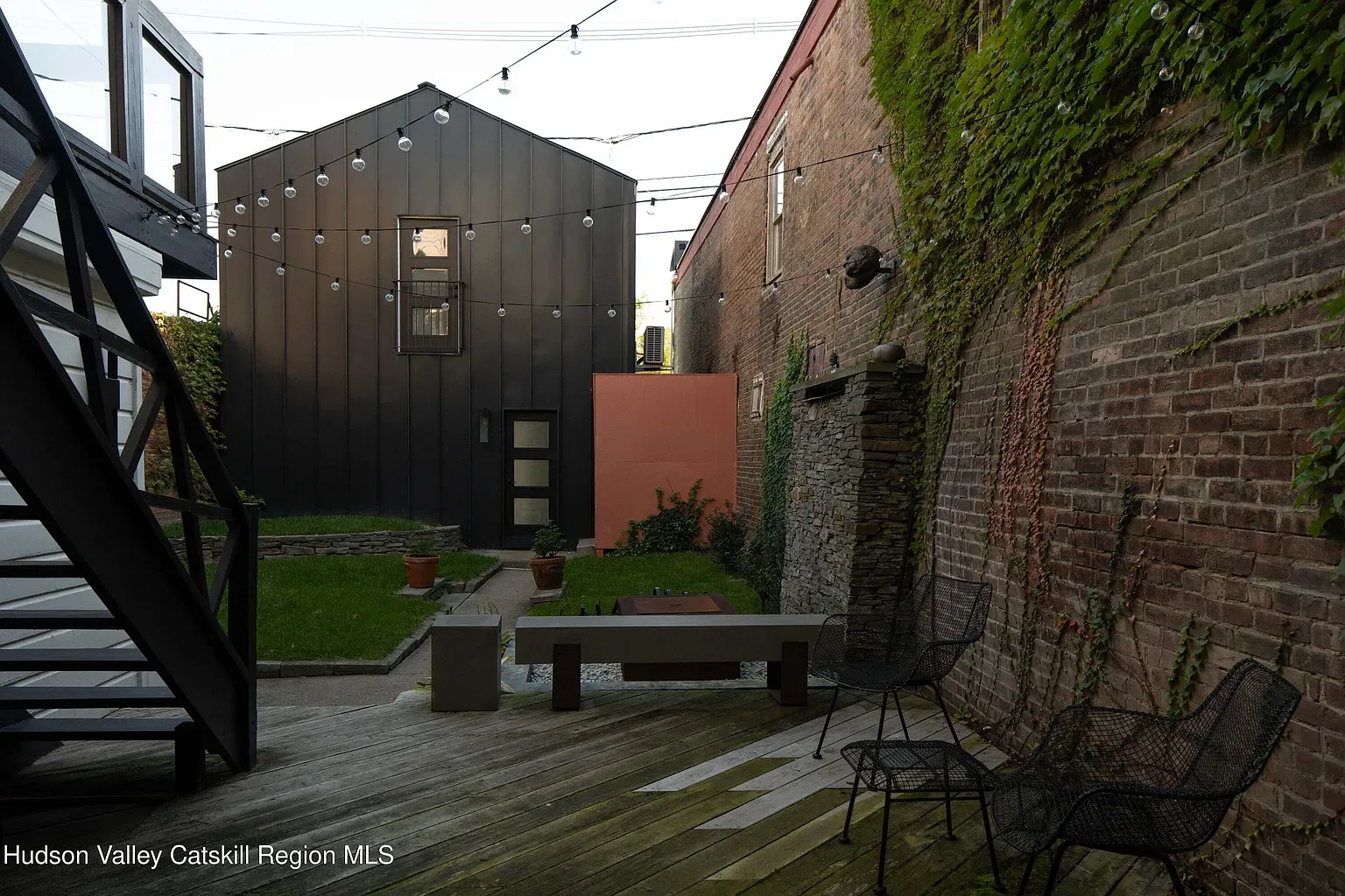 Upstairs, two light-filled bedrooms enjoy soaring ceilings and thoughtful details; the primary suite is highlighted by mountain views and spa-like bath finishes. A separate modern one-bedroom apartment above the garage enhances flexibility, whether as guest quarters, long-term rental income, or additional creative space. Every system has been upgraded—new electrical, plumbing, HVAC, insulation, smart home features, fiber internet, and a full security system—making this property turnkey in the center of Hudson.