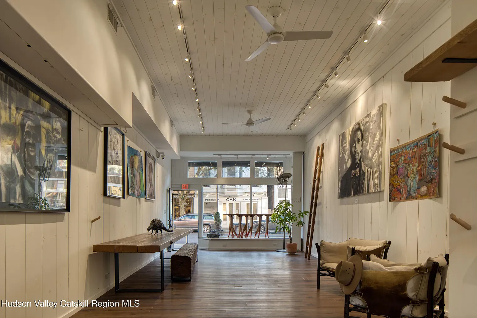 The ground floor was reconstructed as a bi-level commercial storefront with abundant natural light, flexible open space, and a new bath before opening up to a lush private garden oasis just off Warren Street. Above, the residence unfolds with an airy living and dining area, a well-appointed kitchen, and direct access to an outdoor terrace.