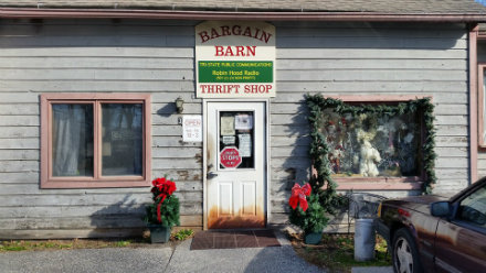 By Lisa Green You can practically feel the sighs of relief — and the air of jubilation — whirling around the filled-to-the-rafters Bargain Barn Thrift Shop, and not just because it’s Christmas shopping time. No, it’s because the Sharon, Conn. thrift shop — a community center, everyone insists — was saved from its demise when the Health Care Auxiliary for the Tri-State Region announced in early November that it was dissolving its charitable status. Thus, they would no longer be able to run the nonprofit thrift store. No other nonprofit organization stepped up to take over. Things looked grim. Enter Tri-State Public Communications, better known as Robin Hood Radio, which, like its namesake would have done, swooped in and rescued the bargain hunter’s destination. (Full disclosure: Rural Intelligence has a weekly radio podcast on Robin Hood Radio.)