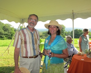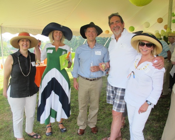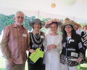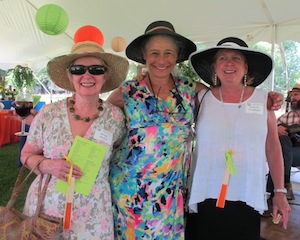Barbara Palmer reports from Monterey. Spectacular hats were part of the fun at the celebration and fundraising party for the 1700s Bidwell House Museum in Monterey on Saturday, August 15. More than 250 guests enjoyed the beautiful view of the Southern Berkshires from the party tent in the “Stone House" field, listening to the Easy Ridin’ Papas and tasting the fabulous creations of chef Kate Baldwin. The party honored the legacy of Joyce and Lew Scheffey and raised nearly $40,000 for the museum’s operating funds. Actor and part-time Monterey resident Marshall Messer, above left with Playwright Marsha Norman and Designer Michael Keith, served as auctioneer.