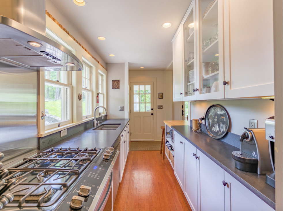 This 1928 home in Sharon offers great views and just about half an acre of land. The two-bedroom, one-bathroom house with a renovated kitchen and bathroom has a recently added three-season porch, a new garage, a gardening shed and new gutters. It's private but only a short walk to Sharon’s markets, Playhouse and coffee shops. Listed for $395,000 by William Pitt Sotheby's International Realty.