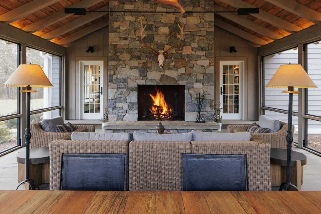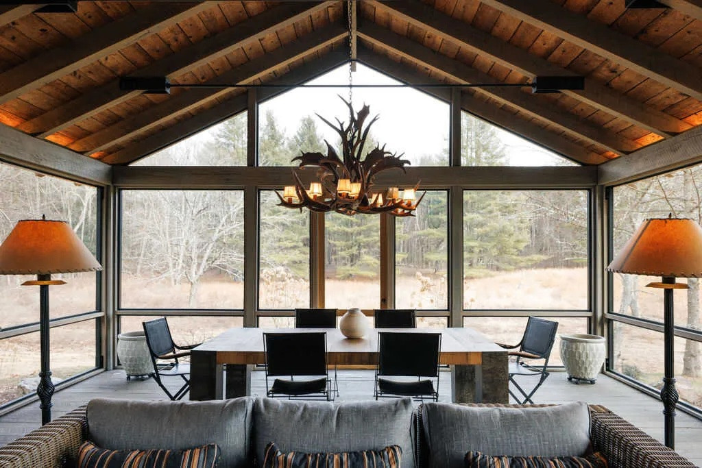 Built in 1950, a Hillsdale home has essentially been rebuilt. It features four bedrooms and three bathrooms, a large living room, and lodge-style screened porch with a fireplace. The kitchen is extended by a sunroom for dining and access to private gardens. The working basement includes storage, laundry and a fully equipped home gym. Listed for $1,975,000 by Rouse+Co Real Estate.