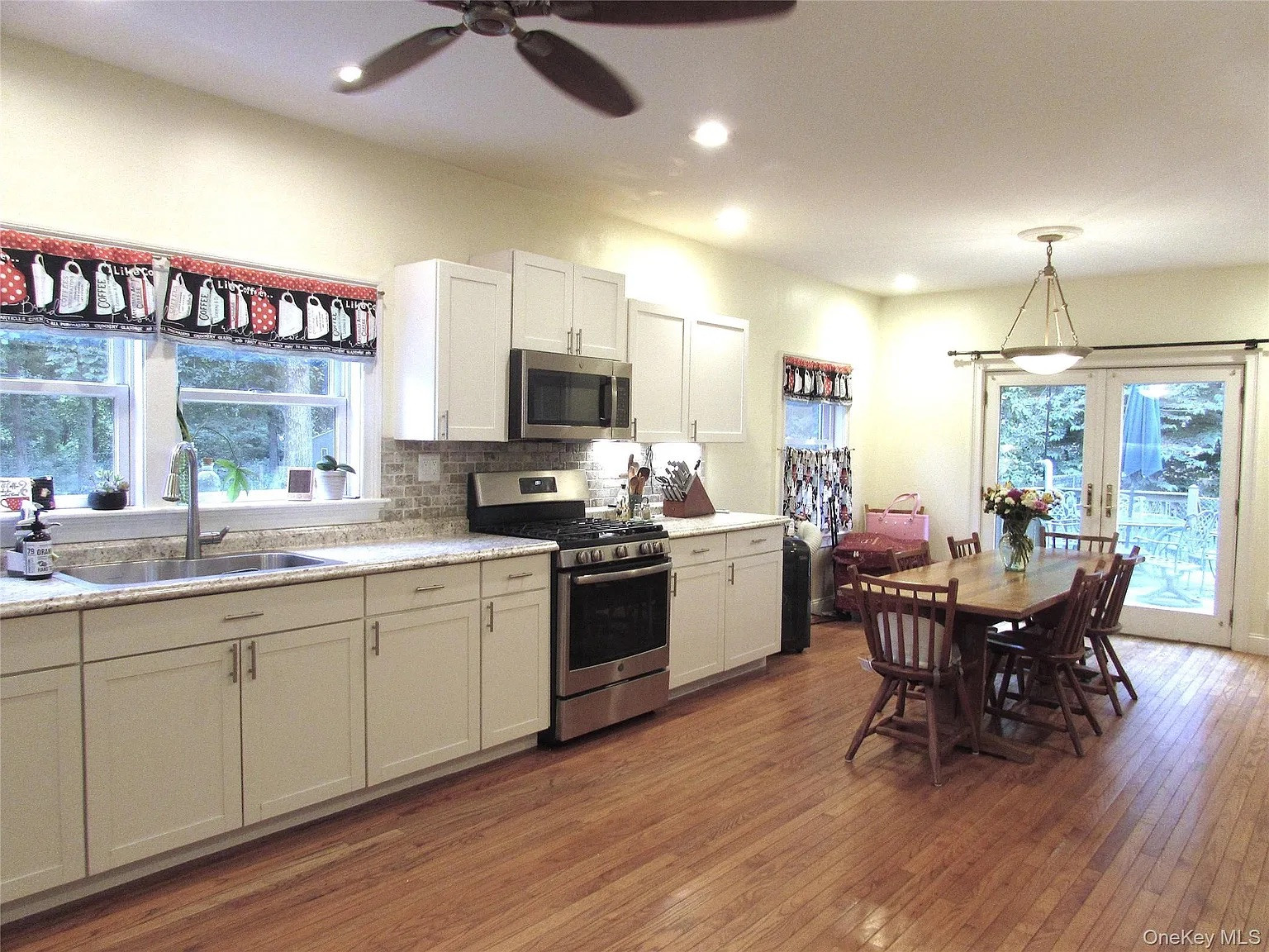 Way up a winding, rural hill, this is a lovingly renovated property with a lot of perks. 283 Johnson Road in Wingdale (a stone’s throw from Millerton, Dover, Litchfield County, and the Wassaic Metro North stop) has three bedrooms and three bathrooms over 2,058 square feet, plus two large detached garages on a combined 1.13 acres.